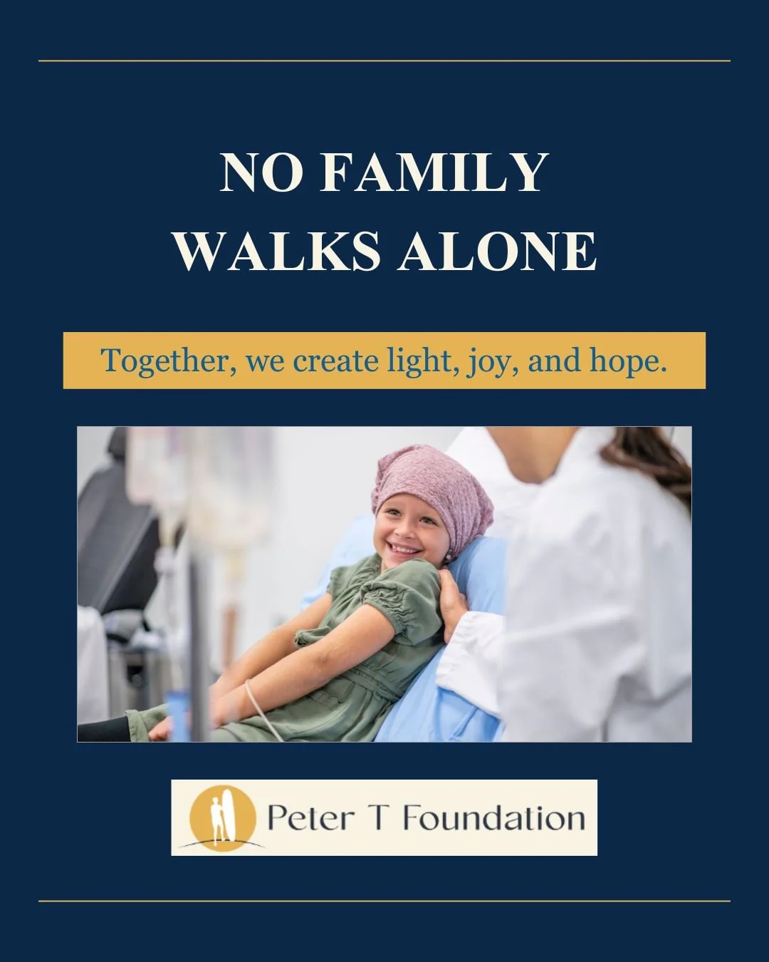 Though Peter has passed, he is still with us in many ways. We hope to extend the joy and happiness Peter gave to all of us through the events and experiences we provide individuals and families battling cancer.
